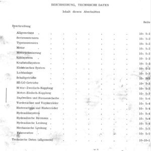Darüber hinaus bietet dieses Werkstatthandbuch alle technische Daten, Reparatur- sowie Einstellwerte und elektrische Schaltpläne für die 3 Schleppertypen.