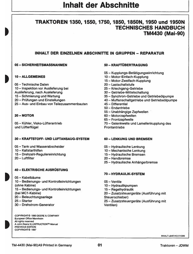 In diesem Werkstatthandbuch werden sehr ausführlich alle Demontage und Montagearbeiten die zur Instandsetzung oder Reparatur von Fahrgestell, Aufbau, Getriebe, Hydraulik erforderlich sind, dargestellt.