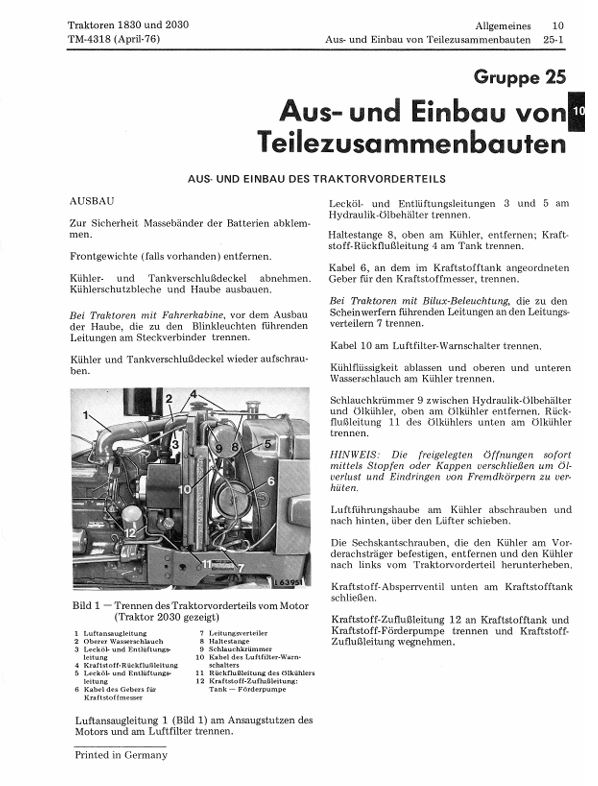 Durch die sehr vielen Abbildungen und den umfangreichen Text ist dieses Werkstatthandbuch auch für Anfänger zu verstehen, die sich an die Reparatur oder Instandsetzung Ihres John Deere Traktors setzen wollen. Bringen Sie Ihren Traktor in Bestform mit diesem Reparaturleitfaden.