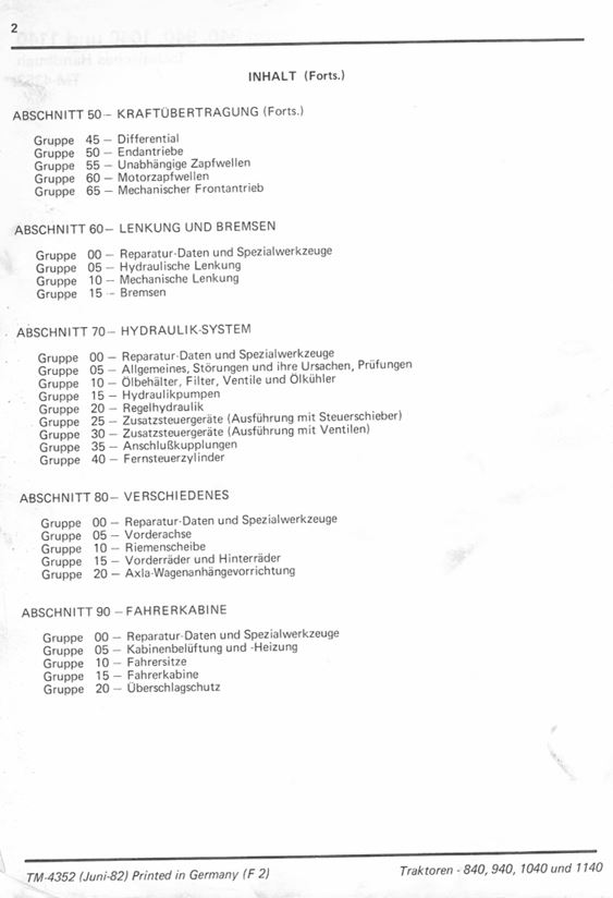 In diesem Werkstatthandbuch werden sehr ausführlich alle Demontage und Montagearbeiten die zur Instandsetzung oder Reparatur von Fahrgestell, Aufbau, Getriebe, Hydraulik erforderlich sind, dargestellt.