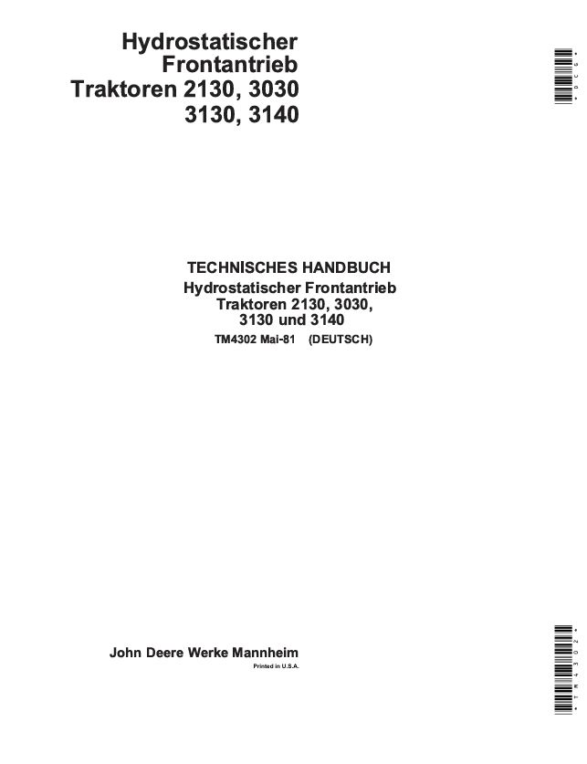 Zusatzhandbuch nur für den hydrostatischen Frontantrieb System John Deere HFWD