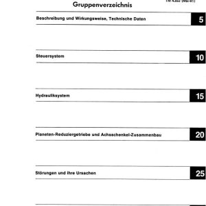 In diesem Werkstatthandbuch werden sehr ausführlich alle Demontage und Montagearbeiten die zur Instandsetzung oder Reparatur der hydraulisch angetriebenen Allradachse sowie der dazugehörigen Zusatzteile erforderlich sind, gezeigt. Diese Anleitung bezieht sich nur auf die Vorderachse als Sonderausrüstung, nicht auf den gesamten Schlepper. Das Werkstatthandbuch zum Traktor finden Sie ebenfalls im Shop.