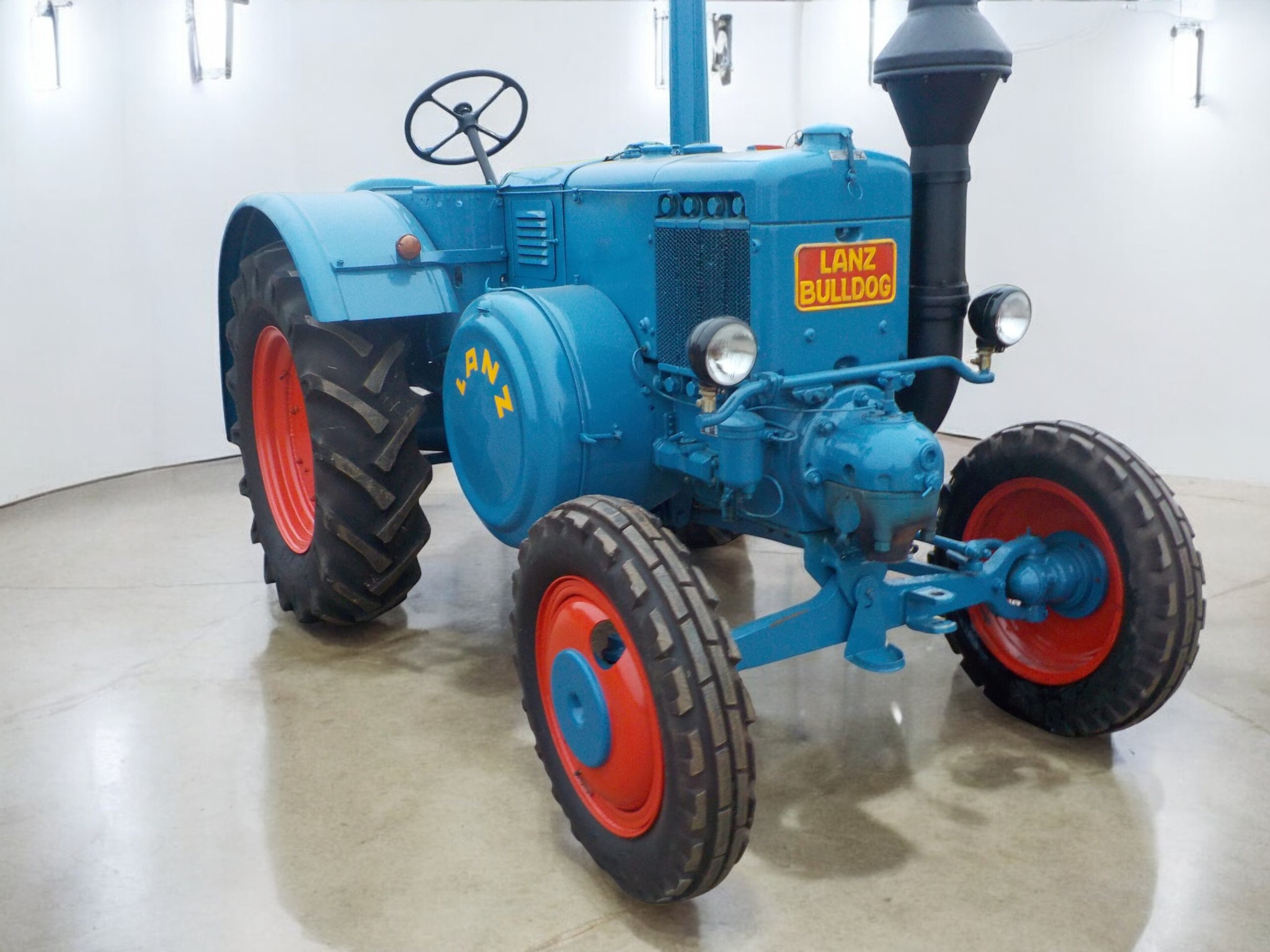 Ehemals französischer Ackerluft Bulldog mit 35PS und normaler Ackerluftausstattung. Das Fahrzeug wurde in Frankreich restauriert und betrieben. Es liegen bereits EU Zulassungspapiere vor. Das Baujahr 1953 zeichnet diesen 35er als einen der letzten seiner Klasse aus. Er verfügt über alle technischen Details, die für die letzte große Glühkopfbaureihe kennzeichnend war. Optisch und technisch befindet sich der Schlepper in ordentlichem Zustand. Die Karosserie besteht im Wesentlichen aus original Teilen, ebenso sind original Kühler verbaut. Der Bulldog verfügt über eine elektrische Lichtanlage, für eine Zulassung in Deutschland muss hier noch optimiert werden. Fußbremsanlage mit Einzelradbremsen!