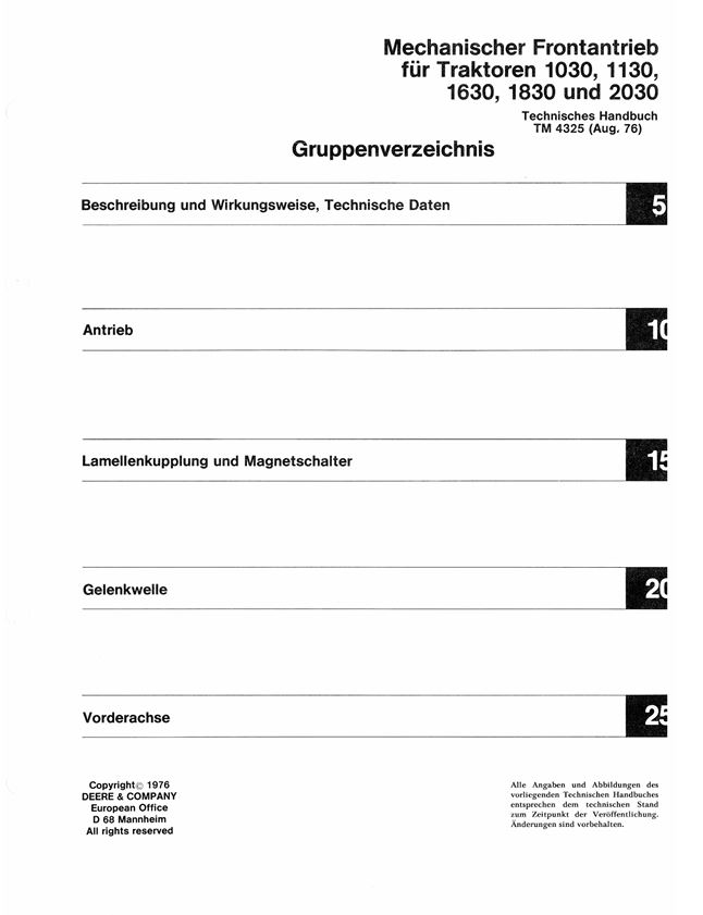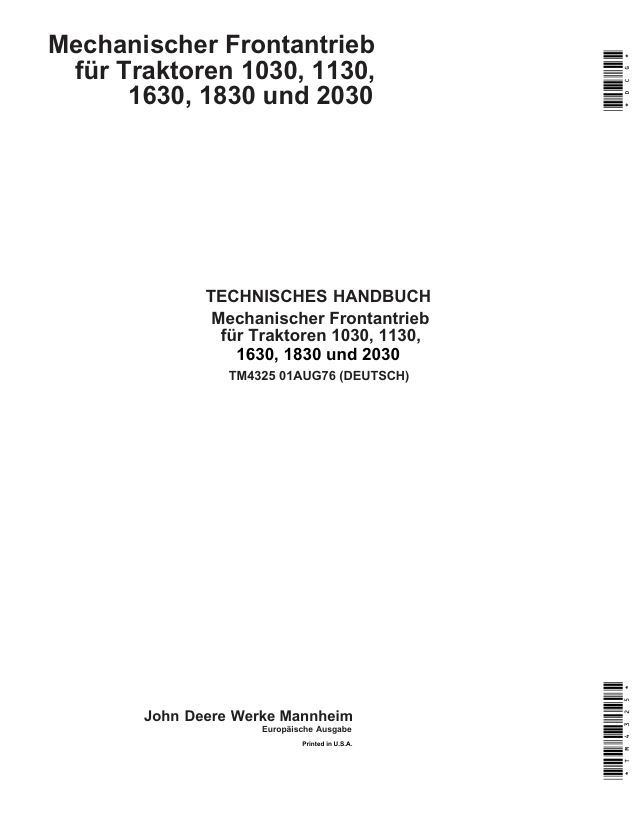 Zusatzhandbuch nur für den mechanischen Frontantrieb System John Deere MFWD (Schindler Achse)